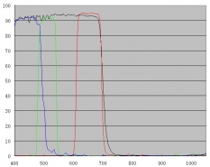 Этот набор предназначен, как для начинающих астрофотографов, благодаря своей демократической цене, так и для серьёзной работы - качество покрытия фильтров соответствует более дорогим брендовым аналогам, также оно устойчиво к царапинам и росе. Все фильтры имеют полосную характеристику пропускания с резкими краями - отсекают ИК и УФ волны, оставляя только "чистый" сигнал с пропусканием до 95%.