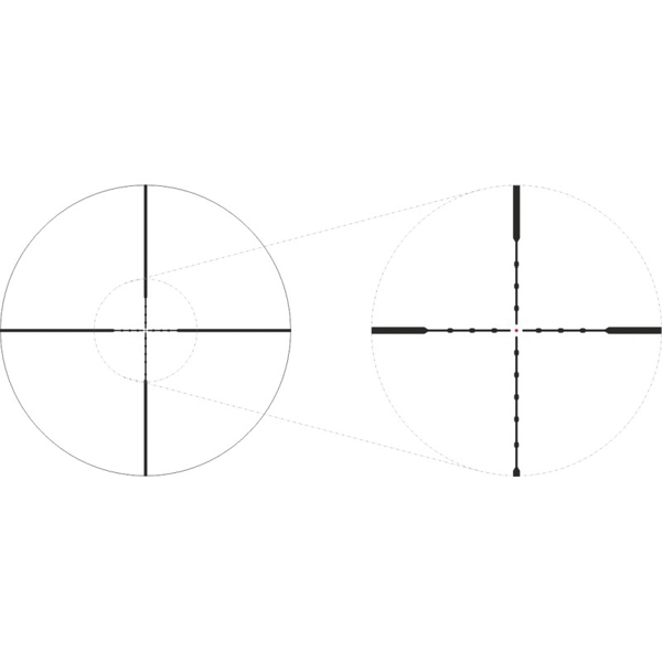 Расположенная в фокальной плоскости окуляра визирная сетка не изменяет размеров при оптическом приближении цели. Интенсивность подсветки центральной точки допускает регулировку в широком диапазоне; имеется режим слабого свечения для совместного использования прицела и ПНВ. На боковую поверхность барабана подсветки нанесены цифровые обозначения и точки: цифры обозначают яркость подсветки, точки соответствуют положению OFF. Благодаря "нулевым" позициям можно за доли секунды отключить подсветку и снова вернуться к выбранным настройкам освещения.