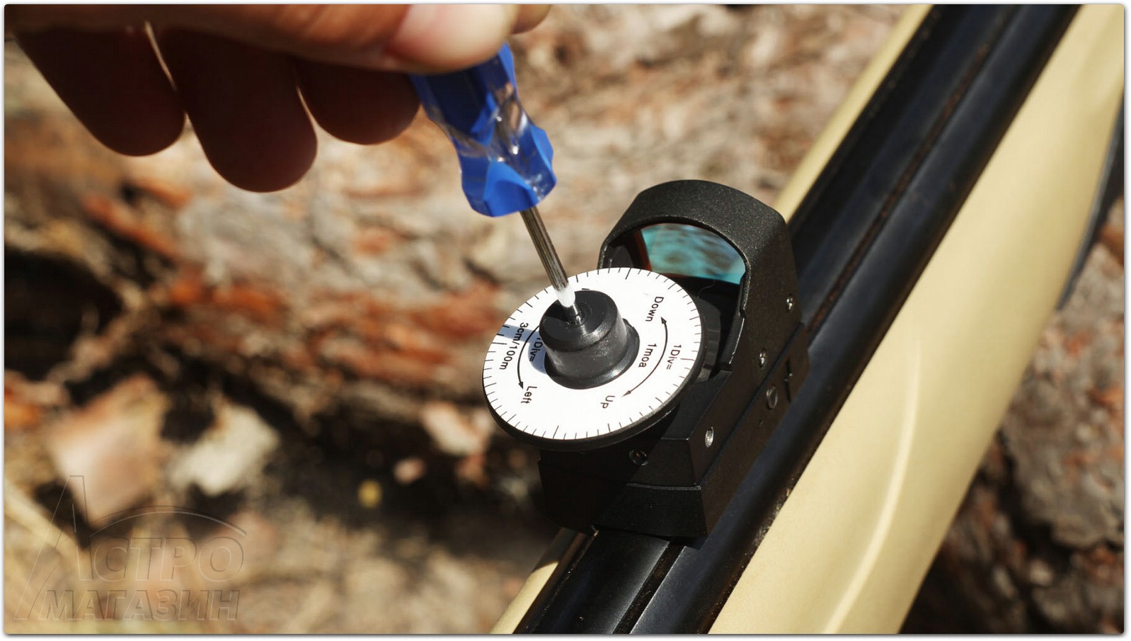 Но не стоит сомневаться в прочности конструкции. Подобные прицелы выдерживают нагрузки вплоть до тысячи Джоулей, то есть MiniDot приспособлен для стрельбы даже из крупного калибра. Перед началом работы, конечно, нужно пристрелять и откалибровать прицел. Для этого понадобится штатная отвёртка и шкала для калибровки.