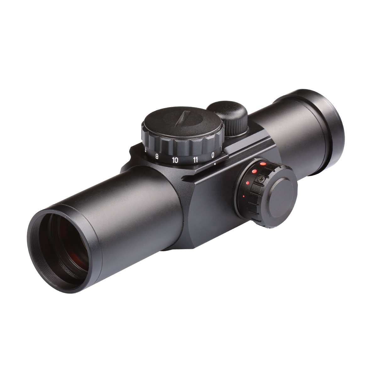 Прицел имеет наклонную переднюю линзу - для уменьшения бликов.