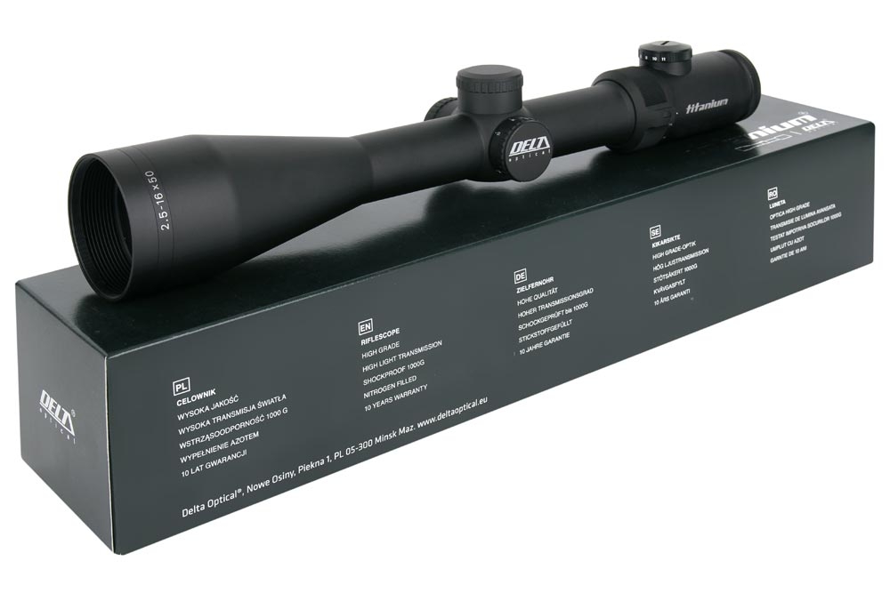 Один из популярных прицелов в ​​новой серии Delta Optical Titanium с боковой регулировкой параллаксаTitanium 2,5-16x56 SF4А обладает отличными оптическими и механическими характеристиками.