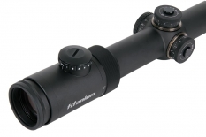 Диапазон увеличений позволяет использовать прицел как для дневной охоты, так и для использования в условиях низкой освещённости. Удобная регулировка параллакса размещается на левой стороне прибора. .