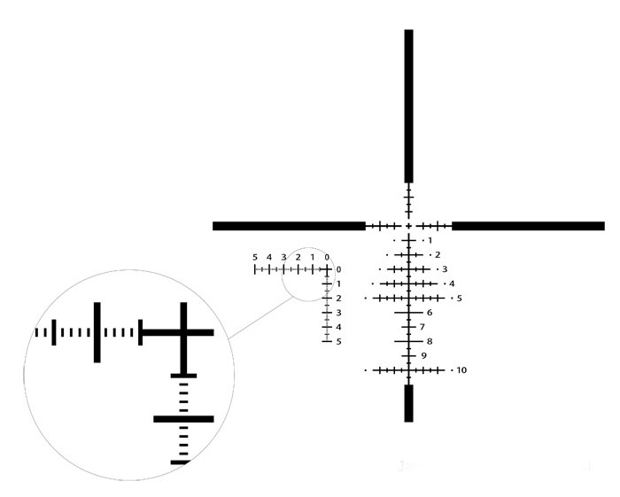Это один из немногих приборов, у которого прицельная сетка расположена в передней части конструкции. Это означает, что размер сетки изменяется с изменением увеличения. Сетка хорошо подходит для измерения расстояний.
