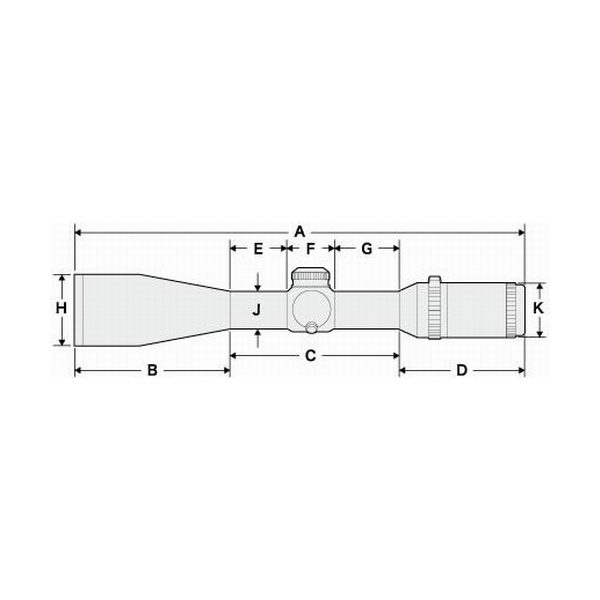 - Детальные размеры прицела, мм: А=352, B=93, C=153, D=106, E=64, F=36, G=53, H=50, J=25.4, K=45