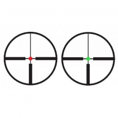 - Подсветка прицельной сетки: красная/зеленая, регулируемая, по 5 уровней яркости для каждого цвета