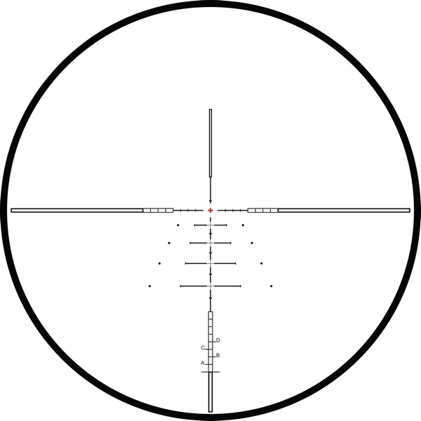 SR PRO IR - это функциональная дальномерная сетка, эксклюзивно разработанная компанией Hawke Optics, которая будет удобна для стрелков, детально работающих с траекторией полета пули. Центральное подсвечивающееся перекрестие достаточно тонкое, чтоб не перекрывать цель. Боковые полые прямоугольные области служат для масштабирования местности. Горизонтальные риски и точки в нижней части сетки позволяют мгновенно вносить ветровые поправки, и будут удобны для удерживания цели в поле прицельного выстрела. Все компоненты этой сетки имеют строго регламентированные размеры, расстояния между всеми элементами также регламентированы. Указанные размеры будут верны при 8-кратном увеличении. Однако сетка обеспечивает удобные точки прицеливания, независимо от используемого калибра, скорости полета или выбранного увеличения. Достаточно просто ввести все необходимые данные в бесплатный баллистический калькулятор X-ACT , и получить персональные расчеты для конкретного оружия и типа патрона.