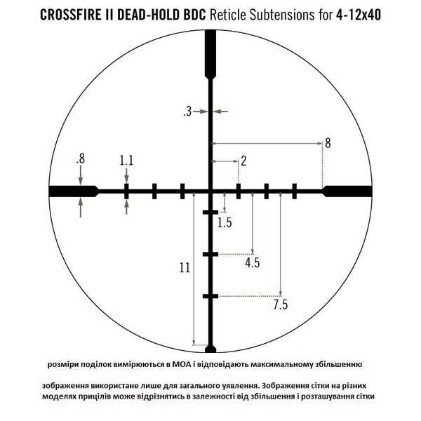 Располагая увеличенным фокусным расстоянием выходного зрачка, механизмом быстрой фокусировки Fast Focus, механизмом отстройки параллакса на объективе, полным многослойным просветлением оптики и обнуляемыми барабанами ввода поправок, данный прицел сконструирован без компромиссов и по своим характеристикам оставляет далеко позади большинство аналогичных моделей в своей ценовой категории. Прочный монолитный корпус из авиационного алюминия с анодированным покрытием защищен от царапин, влаги, пыли и запотевания. Универсальная прицельная сетка Dead-Hold BDC позволяет быстро определить траекторию падения пули на различных дистанциях и принять необходимые поправки по вертикали и горизонтали. Дополнительно комплектация расширена солнцезащитной блендой. Прицел Vortex Crossfire II 6-18x44 AO (BDC) рекомендован для охоты и спортивной стрельбы на средние и дальние дистанции из мощного пневматического, а также нарезного оружия под патроны центрального боя и кольцевого воспламенения калибром до .308 WIN включительно.