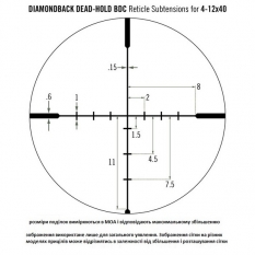 Оптические прицелы Vortex Diamondback - это сугубо охотничьи прицелы, полностью оправдывающие вложенные в покупку средства. Монолитная конструкция из авиационного сплава алюминия делает прицелы этой серии практически неуязвимыми для мощной отдачи винтовок магнум калибра. Заполненные изнутри аргоном вместо привычного азота, прицелы Vortex Diamondback напрочь исключают запотевание оптики при перепадах температур. Полностью многослойно просветленная оптика с широкоугольным окуляром удивит четкой и светлой передачей изображения и широким полем зрения, которые едва ли можно ожидать от прицелов данной ценовой категории. Премиум компоненты, использованные в механизмах трансфокатора и внесения поправок, делают процесс смены увеличения плавным, а процесс внесения поправок четким, повышая долговечность механизмов в целом. Универсальная прицельная сетка Dead-Hold BDC позволяет быстро определить траекторию падения пули на различных дистанциях и принять необходимые поправки по вертикали и горизонтали. Многоцелевой прицел Vortex Diamondback 4-12x40 (BDC) рекомендован для охоты на хищника и крупную дичь, он отлично подходит как для стрельбы из гладкоствольных дульнозарядных ружей и гладкоствольных ружей под патрон, так и для нарезных винтовок магнум калибра до .375 H&H Magnum включительно.
