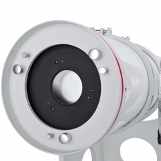 Стоит признать, что наиболее часто используемый узел в телескопе - это фокусер и важность надежности этого узла переоценить сложно. Одной из последних доработок компании, внедренных в данном телескопе, является новый фокусер Hexafoc с внутренним диаметром 2,5". Благодаря такому решению, удалось избежать возможного виньетирования (обрезания) изображения при работе с широкопольными двухдюймовыми окулярами. Кроме того внимание было уделено улучшению плавности хода и стабильности самой системы фокусировки.