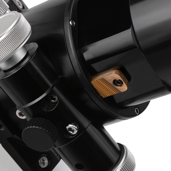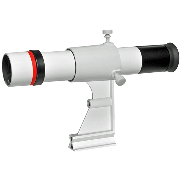 Телескоп снабжен искателем, который крепится к трубе металлическим кронштейном, сохраняющим соосность искателя и телескопа в течение всего сеанса наблюдений.