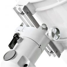 Телескоп комплектуется немецкой экваториальной монтировкой EXOS-2 и устойчивой стальной треногой. Дополнительную жесткость треноге придает металлическая полочка для принадлежностей, имеющая отверстия под окуляры стандартов 1.25” и 2”. Высота треноги регулируется, что позволяет адаптировать телескоп к росту наблюдателя. Монтировка EXOS-2/EQ5 имеет понятную конструкцию и систему управления и способна нести трубу весом до 13 кг. Механизмы тонких движений по обеим осям снабжены гибкими удобными ручками для комфортного управления телескопом при любом положении наблюдателя. Монтировка может быть дополнена приобретаемыми отдельно электрическим приводом оси прямого восхождения и искателем полюса для сопровождения суточного движения светил без участия наблюдателя при визуальных наблюдениях или фотосъемке.