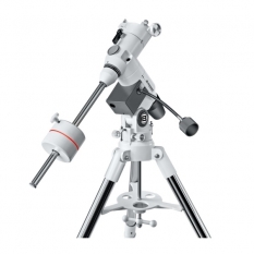 Телескоп устанавливается на современной и удобной в использовании экваториальной монтировке EXOS-2/EQ5. Монтировка оборудована искателем полюса, а также градуированными установочными кругами и снабжена специальными ручками для удобства управления из любого положения пользователя. Монтировка поставляется с прочным стальным штативом, который устраняет возникающие при работе вибрации, что делает монтировку пригодной для астрофотографирования.
