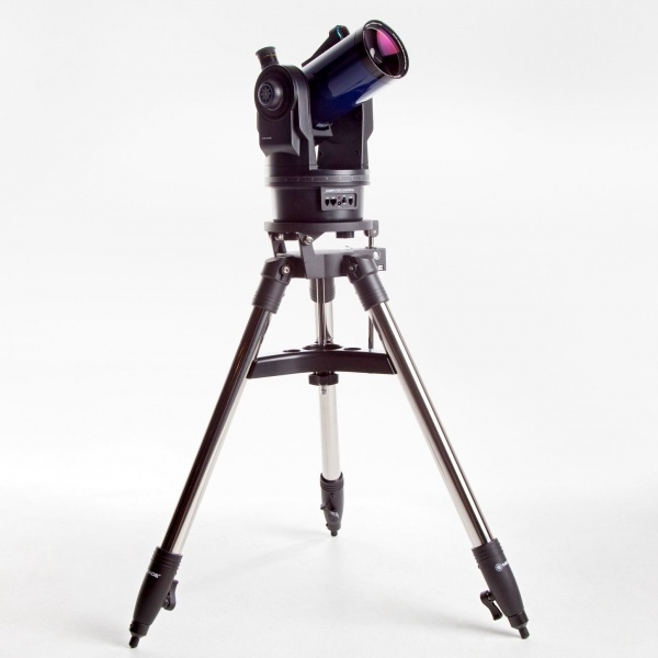 Телескоп оснащен моторизованной вилочной монтировкой и автоматической системой наведения, облегчающей процесс наблюдений за космическими объектами. Благодаря высокой степени автоматизации и фирменной системе AutoStar 497 с управлением справится даже школьник. Большинство телескопов данной ценовой категории оснащены всего лишь одноперьевой вилочной монтировкой, в то время как ETX-90 - двухперьевой. Такая монтировка обеспечивает надежную фиксацию зрительной трубы и позволяет свести к минимуму вероятность возникновения вибраций при наблюдениях. Это особенно важно при фотосъемке астрономических объектов. Модель ETX-90 отлично подходит для занятия астрофотографией - входящая в комплект тренога позволяет устанавливать монтировку в экваториальное положение, что обеспечивает длительное время слежения за космическими объектами.