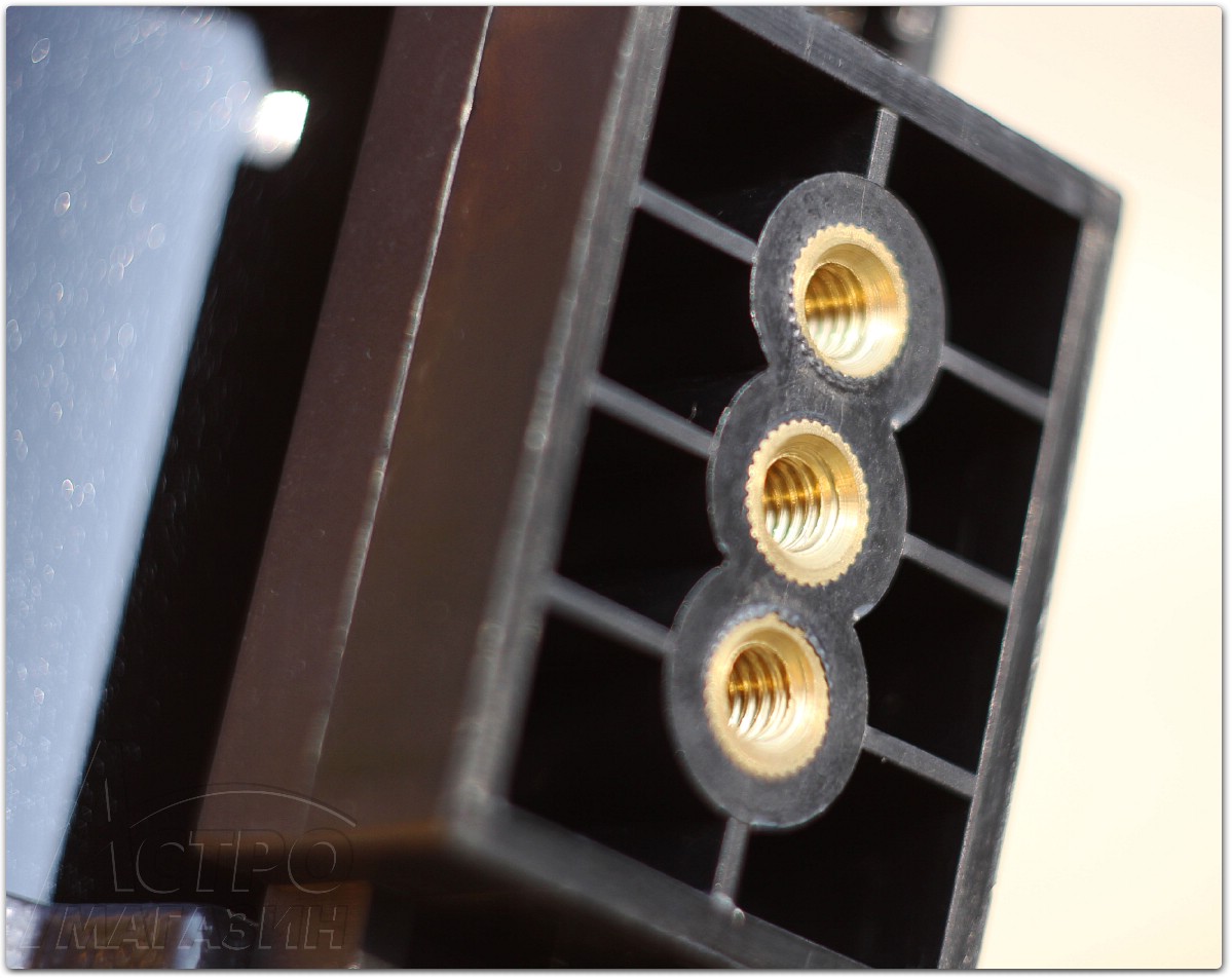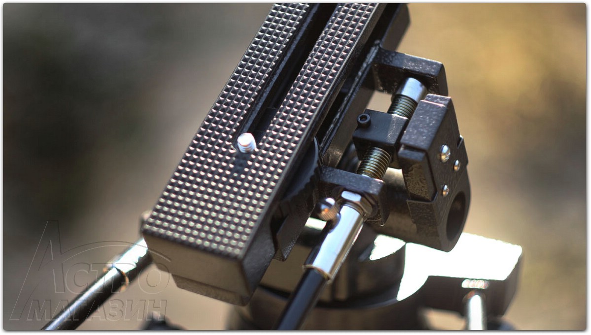 Труба телескопа закрепляется на установочной планке монтировки с помощью стандартного винта 1/4", который используется в фотоштативах.