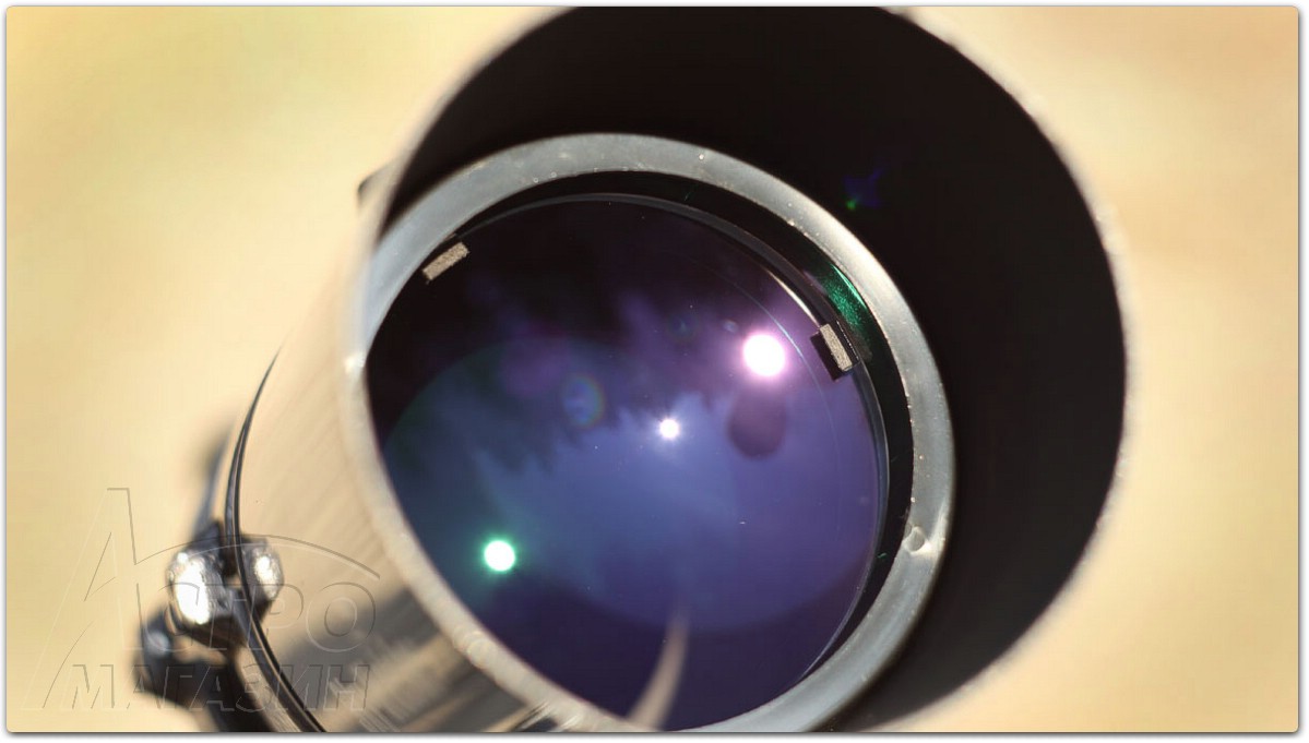 804-ый сделан намного солиднее, чем младшие 70мм модели. Качественный просветлённый ахроматический объектив имеет прочную оправу и защищён блендой.