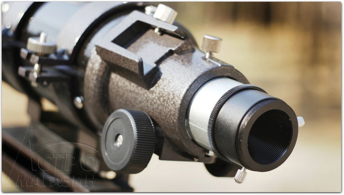 В нижней части алюминиевой трубы установлен неплохой металлический реечный фокусёр с посадкой 1,25". Хвостовик фокусёра оснащён резьбой М42х0,75. Этот момент очень важен. Ведь 804-ый - это излюбленный гидирующий телескоп у многих астрофотографов.