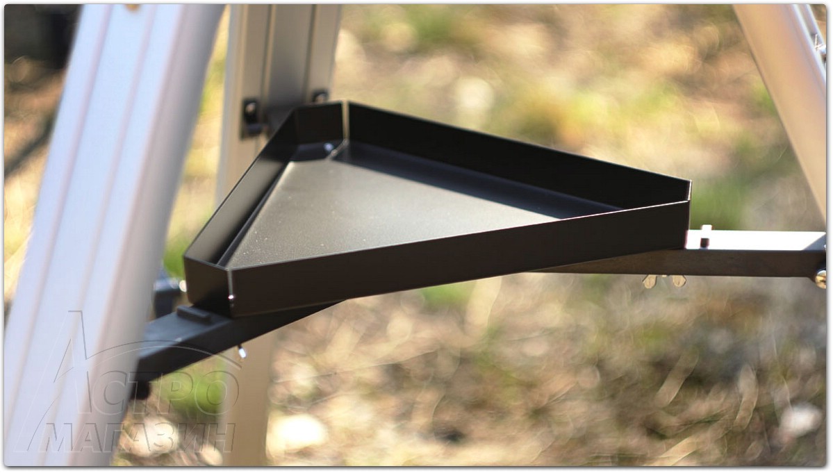 Сборка инструмента занимает считанные минуты. Азимутальная монтировка AZ3 сразу готова к использованию. Головка монтировки установлена на хорошей алюминиевой треноге, которая имеет регулировку высоты ножек и оснащена удобной полочкой для аксессуаров.