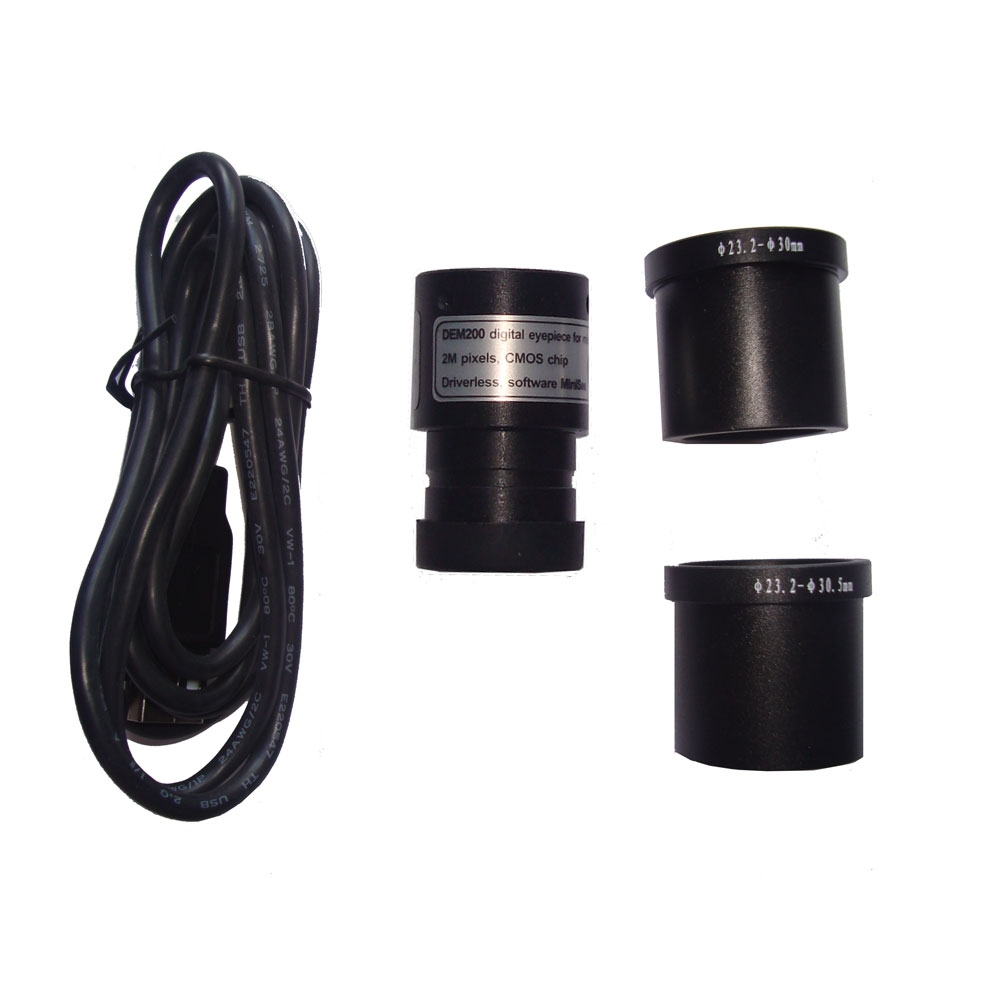 DEM-200 - профессиональная цифровая камера (2Mpix), разработанная для микроскопа. Совместима со всеми видами оптических микроскопов: Биологическими микроскопами, Металлургическими микроскопами, Стерео микроскопами и т.д. DEM-200 имеет высокую чувствительность, таким образом это превосходная камера для флуоресцентных и темнопольных микроскопов.