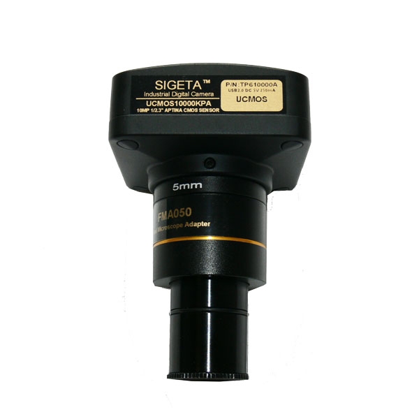 Скорость передачи составляет 1.9 кадров в секунду при разрешении 3284 x 2748 пикселей, 8 кадров в секунду при разрешении 1792x1374 пикселей, 27 кадра в секунду при разрешении 896х684 пикселей. Камера предназначена для работы со всеми микроскопами и может быть установлена на монокулярный, бинокулярный микроскоп - вместо одного окуляра, или, если микроскоп имеет тринокулярную насадку - в специальный вертикальный вывод. Окулярный адаптер может быть снят - так как крепление адаптера стандартное (C-Mount), то с камерой будут совместимы любые другие объективы и адаптеры имеющие крепление аналогичного стандарта.