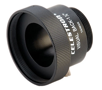 Адаптер Сelestron Visual Back 1.25" используется для присоединения различных аксессуаров с посадкой на 1.25" (окуляров, диагоналей и т.п.) на всех телескопах Шмидта-Кассегрена фирмы Celestron.