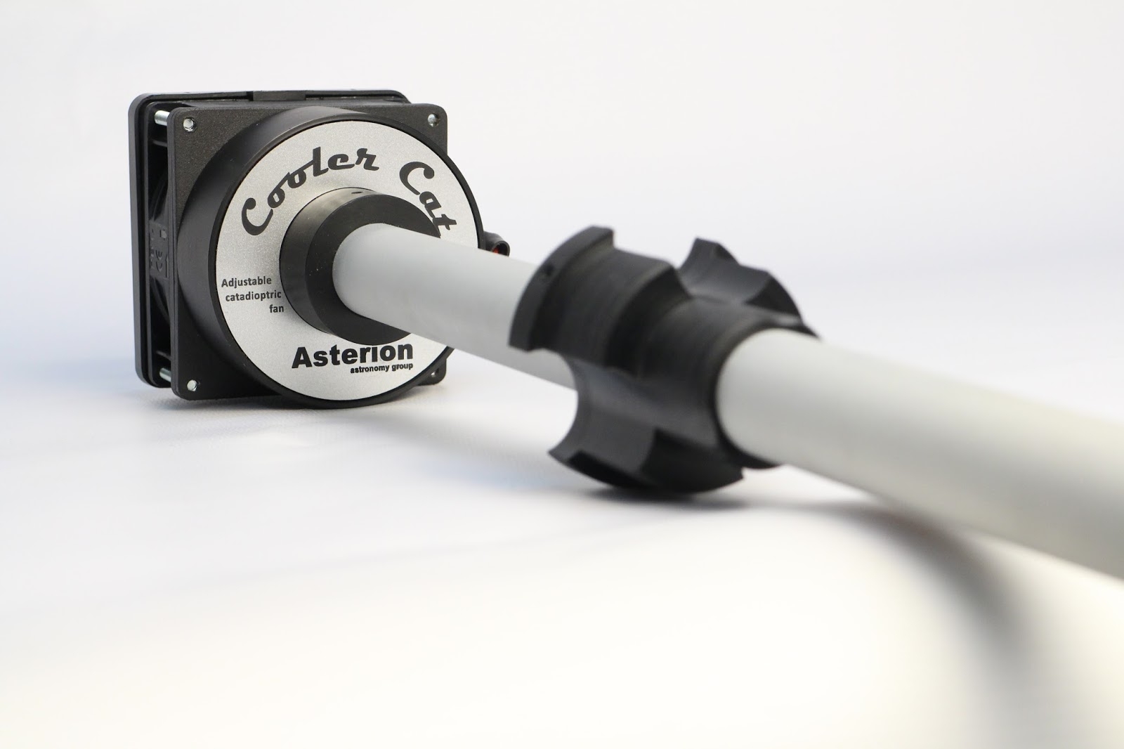 Cooler Cat оснащён вентилятором, который собирает и фокусирует поток воздуха. Сквозь длинную трубку воздух поступает во внутреннюю часть телескопа и обдувает оптические поверхности. Это позволяет ускорить теплообмен и сократить время остывания оптики в несколько раз. Устройство оснащено двойным фильтром, предотвращающим попадание пыли вовнутрь телескопа в процессе работы вентилятора. Сквозь специальные окна в посадочном адаптере теплый воздух выходит из трубы под давлением.
