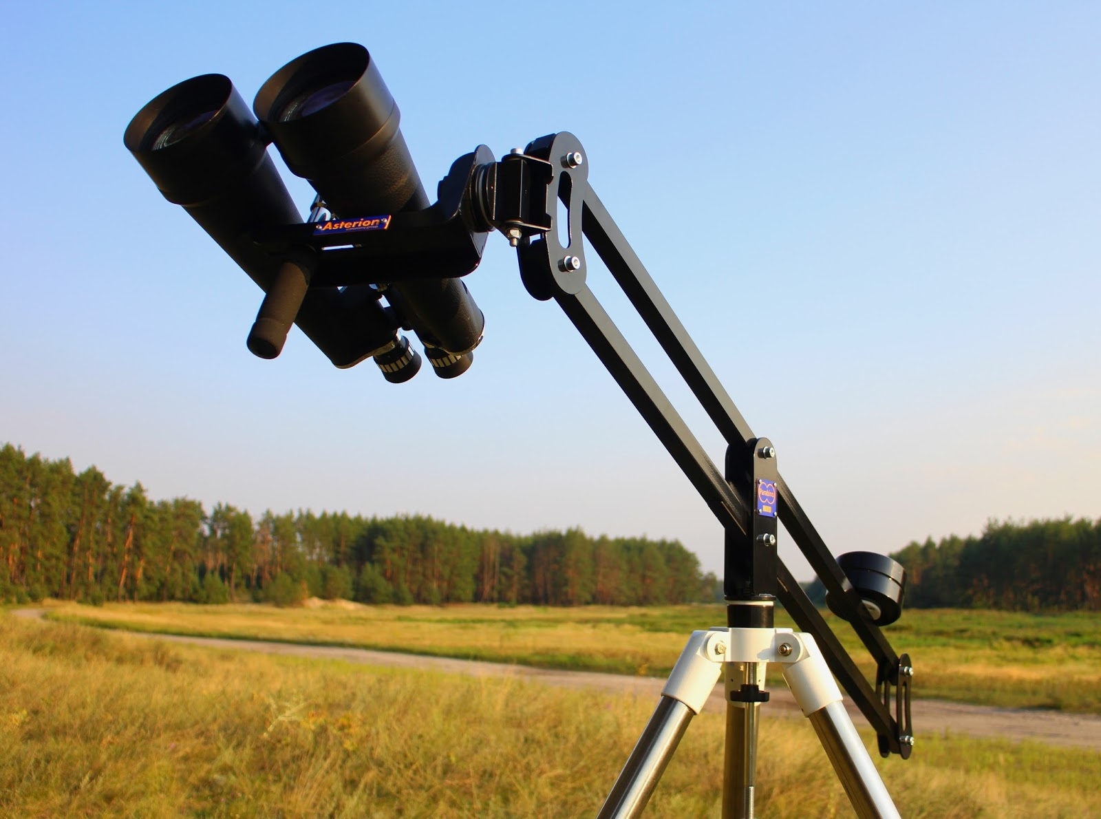 Наблюдать за прекрасными россыпями звёзд Млечного Пути, далёкими туманностями и яркими кометами, безусловно, приятнее двумя глазами. Так что хороший бинокль может быть не просто дополнением к телескопу, а часто, даже его заменой. Проблемы возникают с ростом апертуры и веса. Наблюдать в бинокль весом более 1,5кг становится практически невозможно, а фотоштатив не обеспечивает комфортного положения наблюдателя.