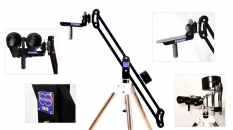 Конструкция параллелограмма обеспечивает плавное перемещение бинокля в вертикальной плоскости, сохраняя при этом направление взгляда. Монтировка Parabino HD оснащена поворотным кулаком для кронштейна бинокля, который позволяет наблюдателю плавно и точно отслеживать объект наблюдений, не меняя своей позиции.