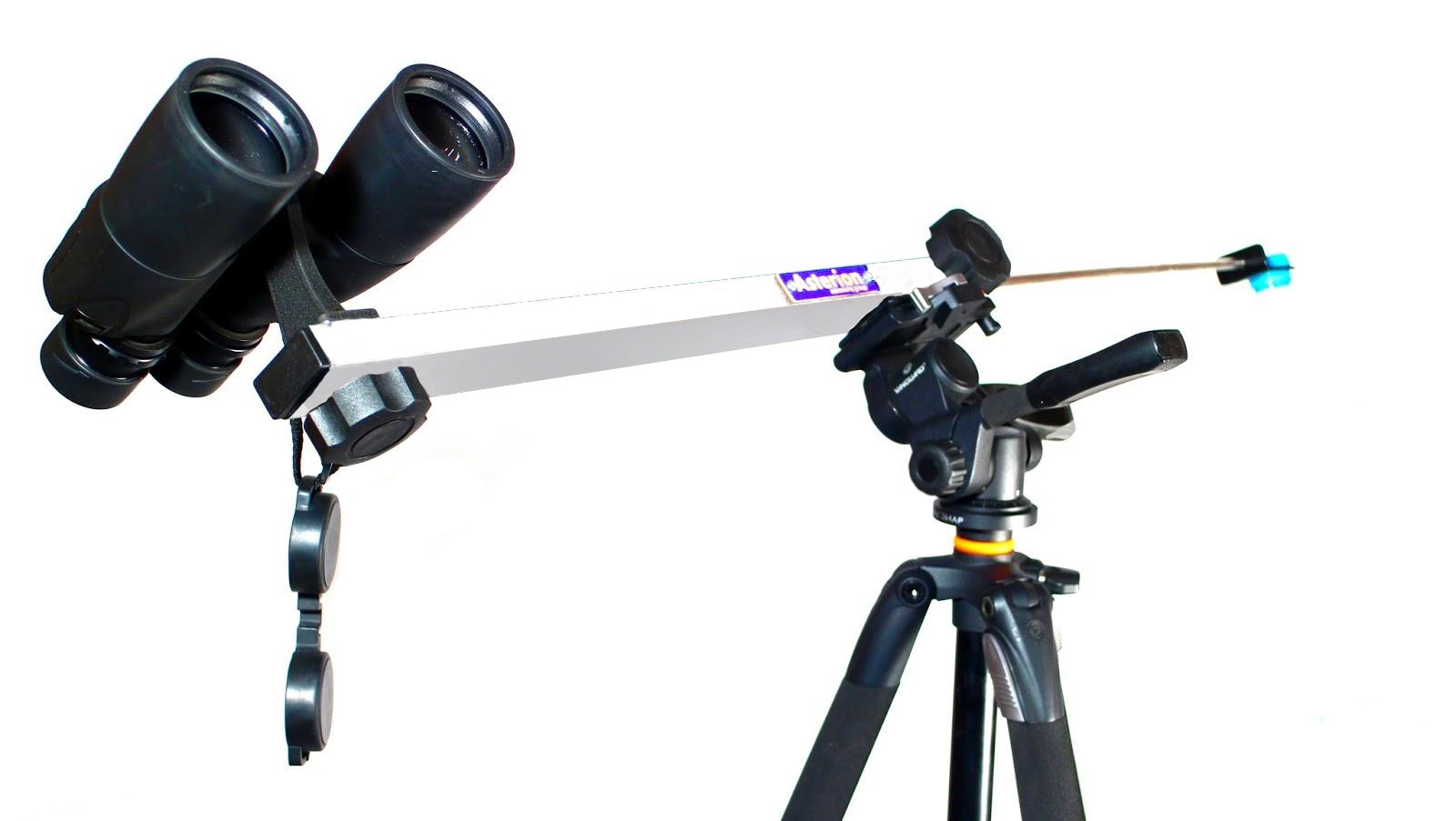 Монтировка Parabino Travel представляет собой раздвижную перекладину, которая устанавливается на головку стандартного фотоштатива. По одну сторону монтировки вы можете закрепить бинокль весом до 2кг на L-адаптере. Выдвижная штанга имеет на своём конце крепление под горлышко стандартной пластиковой бутылки с водой, которая оказывается на другой стороне монтировки, играя роль противовеса.