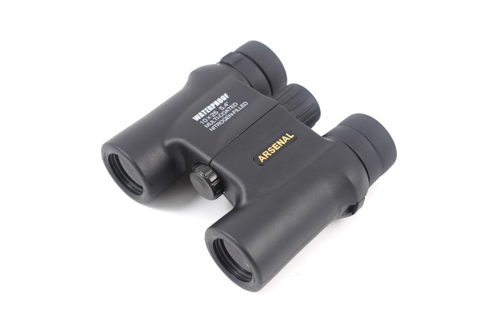 Бинокль Arsenal 10х25 DCF имеет большой барабан центральной фокусировки, обеспечивающий плавную и точную настройку, а также диоптрическую настройку правого окуляра для точного соответствия индивидуальным особенностям зрения. Резиновое покрытие корпуса со специальными выемками для пальцев создает комфортность наблюдений и надежность при удержании бинокля в руках.