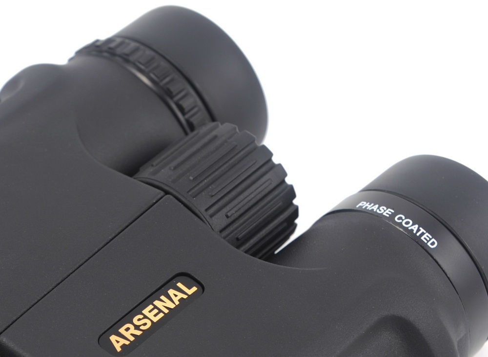 Бинокль Arsenal 10х32 DCF имеет большой барабан центральной фокусировки, обеспечивающий плавную и точную настройку, а также диоптрическую настройку правого окуляра для точного соответствия индивидуальным особенностям зрения. Резиновое покрытие корпуса со специальными выемками для пальцев создает комфортность наблюдений и надежность при удержании бинокля в руках.