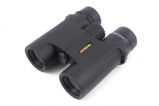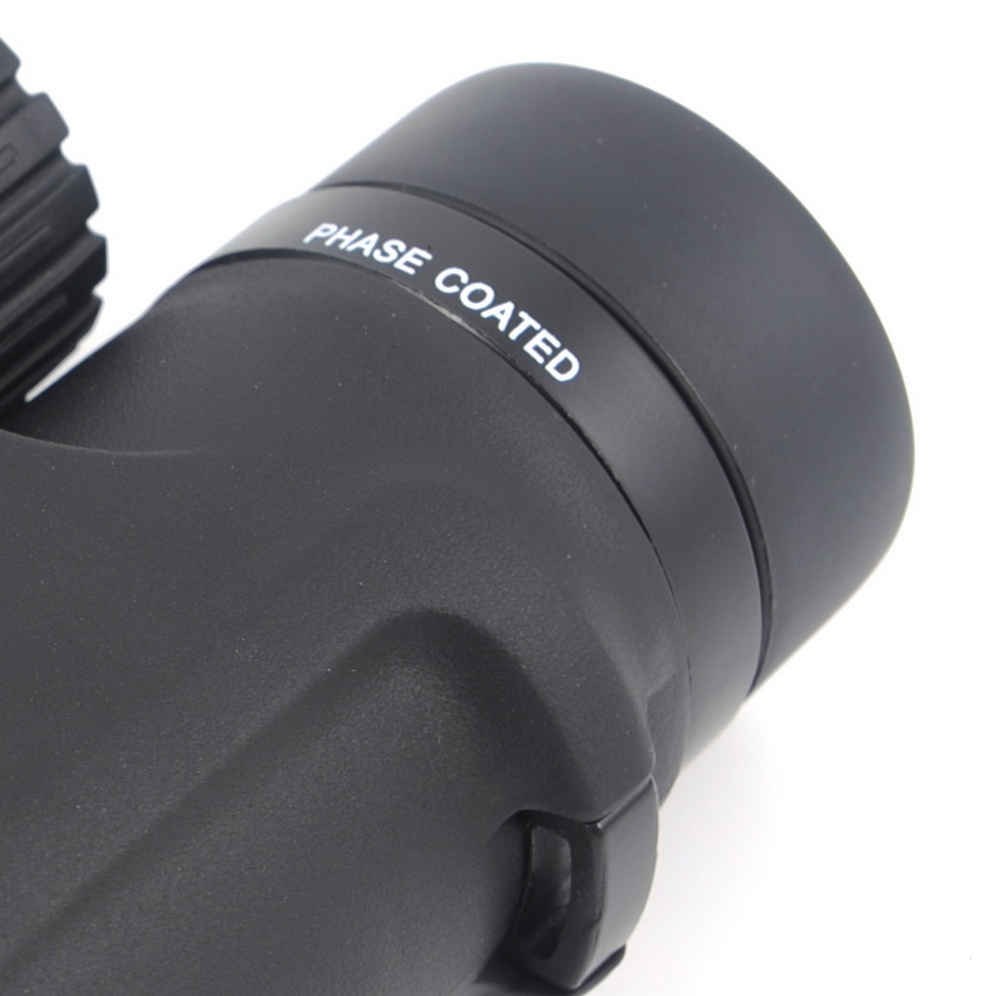 Корпус бинокля покрыт резиновым слоем, повышающим ударопрочность. Линзы, имеющие полное мультипросветляющее покрытие, а также призмы с фазоконвертирующим слоем и напылением серебра обеспечат четкую, контрастную и яркую картинку. Вынесенная окулярная точка и поворотно-выдвижные наглазники позволяют вести наблюдение, не снимая очков. Защитные крышки для окуляров прикреплены к объективам.