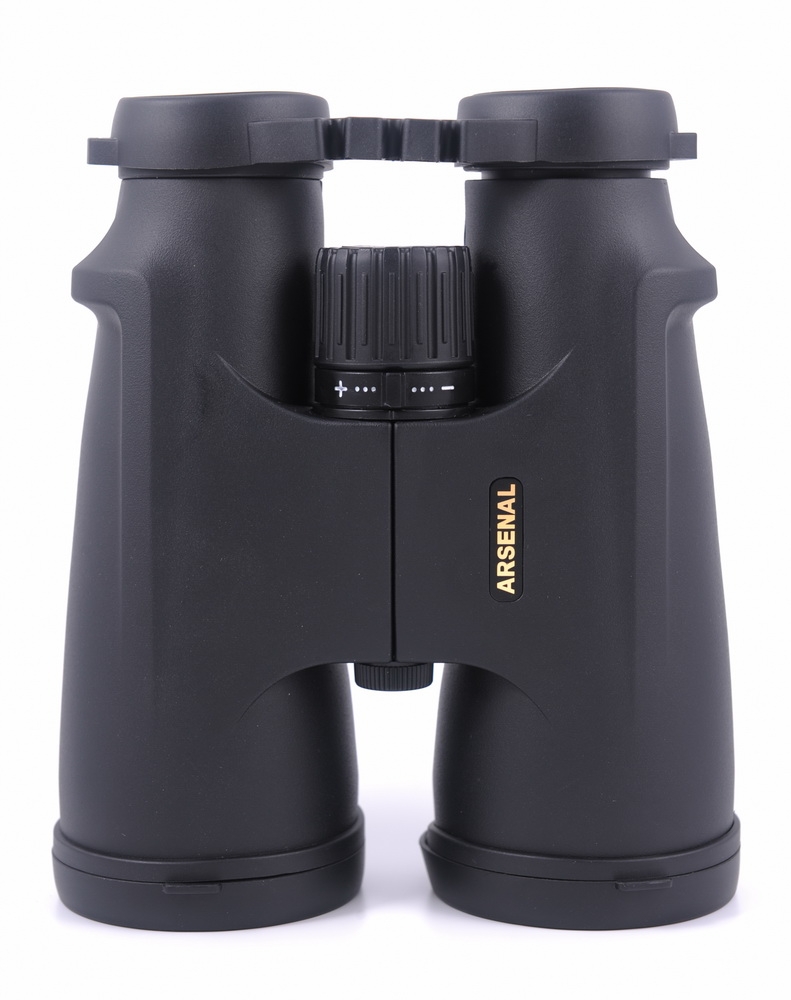 Бинокль Arsenal 10х56 DCF имеет большой барабан центральной фокусировки, обеспечивающий плавную и точную настройку, а также диоптрическую настройку правого окуляра для точного соответствия индивидуальным особенностям зрения. Резиновое покрытие корпуса со специальными выемками для пальцев создает комфортность наблюдений и надежность при удержании бинокля в руках.
