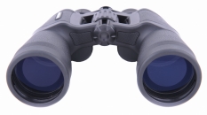 Корпус бинокля имеет традиционные обводы, без ломаных линий. Он практически полностью выполнен из прочного поликарбоната. Исключение составляют лишь элементы центральной балки бинокля, призменных блоков и фокусировочного механизма. Цвет бинокля темно-серый, практически черный. Тубусы и призменные блоки бинокля покрыты декоративными резиновыми накладками аналогичного оттенка. Резиновое покрытие бинокля весьма приятно на ощупь и имеет текстурную поверхность, имитирующую кожу. Среди деталей корпуса бинокля стоит отметить проушины для фиксации шейного ремешка и металлическое гнездо крепления штативного L-адаптера, закрытое удобной декоративной завинчивающейся крышечкой. Бинокль выполнен по классической оптической схеме Porro с применением призм типа ВК7. Его объективы покрыты голубовато-лиловым двухслойным просветляющим покрытием типа MC (multi-coated) на основе фторида магния (MgF). Окуляры бинокля имеют вынос зрачка порядка 12 мм. Диаметр глазных линз окуляров 23 мм. Наглазники на окулярах бинокля выполнены из мягкой резины и имеют высоту 12мм. Призмы прибора просветлены аналогичным образом и частично оснащены светозащитными крышками. Фокусировка бинокля - центральная. Колёсико фокусировки широкое, пластиковое диаметром 34 мм, с резиновым покрытием и радиальной накаткой. Расположение узла удобное, ход плавный. Диапазон настройки укладывается в полтора оборота колёсика. Это гарантирует, что процесс наведения на резкость будет весьма информативен и точен. Минимальная дистанция фокусировки бинокля составляет 6 метров. Диоптрийная регулировка под особенности зрения наблюдателя производится вращением правого окуляра. Для удобства настройки на корпус окуляра нанесена соответствующая разметка, а на резиновое покрытие - накатка. Диапазон диоптрийной подстройки составляет +/-5 диоптрий.