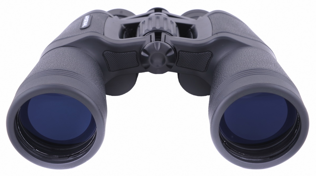 Диапазон регулировки данного расстояния (IPD) вполне классический и изменяется в пределах от 58 до 72мм. Бинокль выполнен по классической оптической схеме Porro с применением призм типа ВК7. Его объективы покрыты голубовато-лиловым двухслойным просветляющим покрытием типа MC (multi-coated) на основе фторида магния (MgF). Окуляры бинокля имеют вынос зрачка порядка 12 мм. Диаметр глазных линз окуляров 21 мм. Наглазники на окулярах бинокля выполнены из мягкой резины и имеют высоту 5 мм.На поверхности линз окуляров нанесено голубовато-лиловое просветляющие покрытие,аналогичное покрытию на объективах.Призмы прибора просветлены аналогичным образом и частично оснащены светозащитными крышками. Фокусировка бинокля - центральная. Колёсико фокусировки широкое, пластиковое диаметром 34 мм, с резиновым покрытием и радиальной накаткой. Расположение узла удобное, ход плавный.Диоптрийная регулировка под особенности зрения наблюдателя производится вращением правого окуляра. Для удобства настройки на корпус окуляра нанесена соответствующая разметка, а на резиновое покрытие - накатка. Диапазон диоптрийной подстройки составляет +/-4 диоптрии.