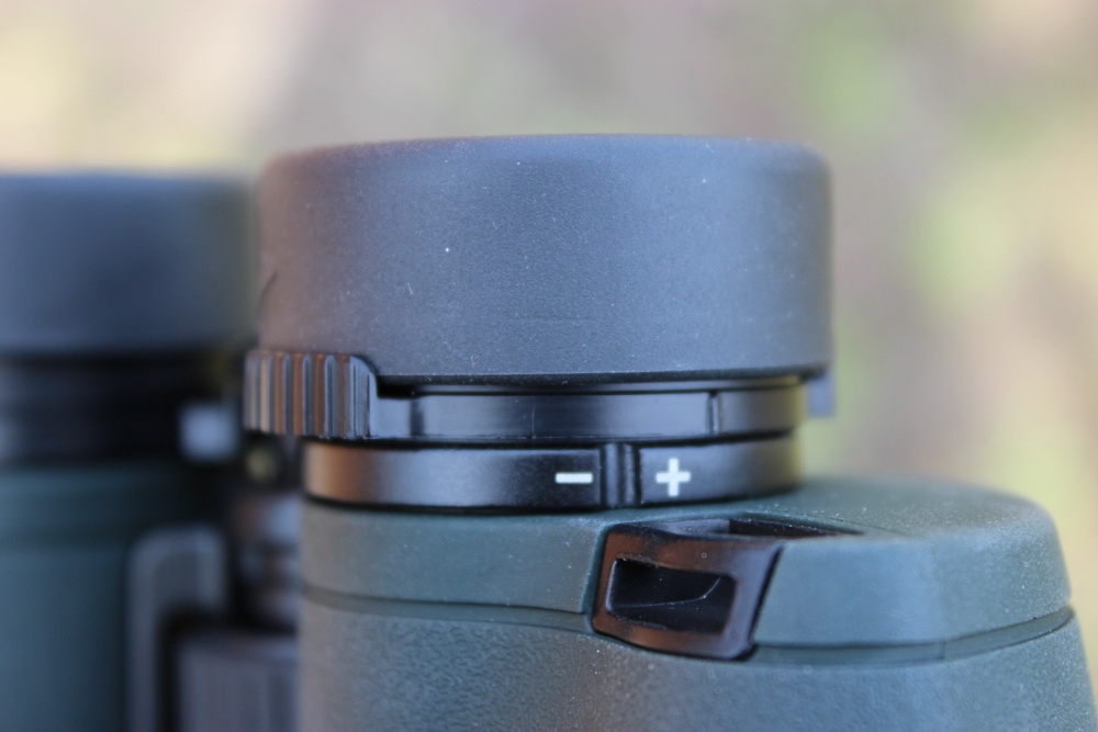 Бинокль имеет большой барабан центральной фокусировки, обеспечивающий плавную и точную настройку, а также диоптрическую настройку правого окуляра для точного соответствия индивидуальным особенностям зрения. Поворотно-выдвижные наглазники с тремя фиксированными положениями позволяют вести наблюдение, не снимая очков.