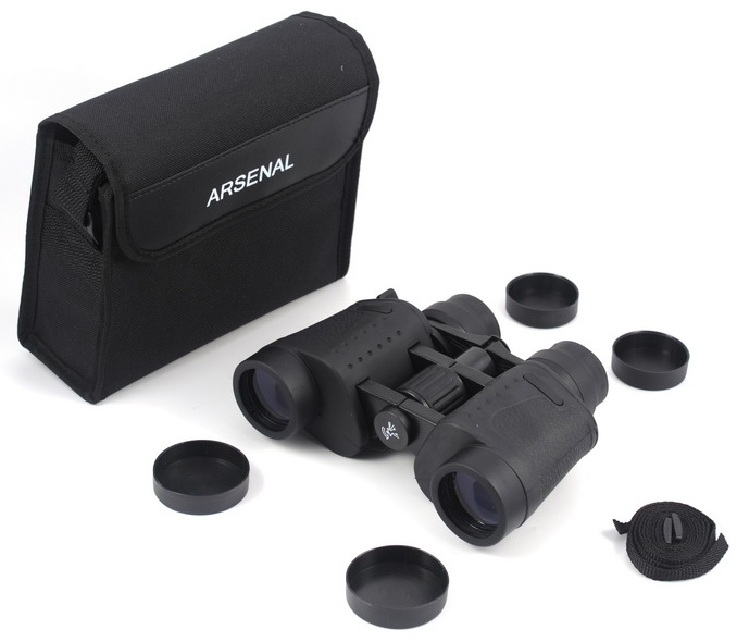 Бинокль Arsenal 7-15x35 Porro/Black - недорогой бинокль с переменным увеличением для наблюдения за природой, для туризма и активного отдыха. Относительно небольшой и легкий бинокль станет отличным спутником во время путешествий. Возможность самостоятельной регулировки увеличения в широком диапазоне от 7х до 15х. При использовании увеличений свыше 12х рекомендуется бинокль устанавлитьва на штатив для стабилизации изображения. Выбор увеличения осуществляется с помощью специального рычага трансфокатора на правом окуляре. Классическая оптическая схема с использованием призм типа Porro, изготовленных из боросиликатного сорта оптического стекла (BK7), обеспечивает хорошую глубину резкости. Чтобы уменьшить количество отраженного света, и тем самым повысить качество картинки, на линзы бинокля нанесено специальное просветляющее покрытие.