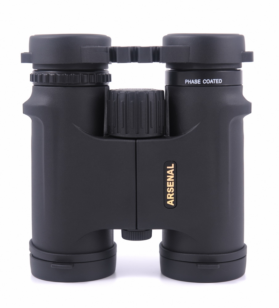 Бинокль Arsenal 8х32 DCF имеет большой барабан центральной фокусировки, обеспечивающий плавную и точную настройку, а также диоптрическую настройку правого окуляра для точного соответствия индивидуальным особенностям зрения. Резиновое покрытие корпуса со специальными выемками для пальцев создает комфортность наблюдений и надежность при удержании бинокля в руках.