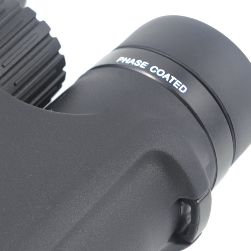 Корпус бинокля покрыт резиновым слоем, повышающим ударопрочность. Линзы, имеющие полное мультипросветляющее покрытие, а также призмы с фазоконвертирующим слоем и напылением серебра обеспечат четкую, контрастную и яркую картинку. Вынесенная окулярная точка и поворотно-выдвижные наглазники позволяют вести наблюдение, не снимая очков. Защитные крышки для окуляров прикреплены к объективам.