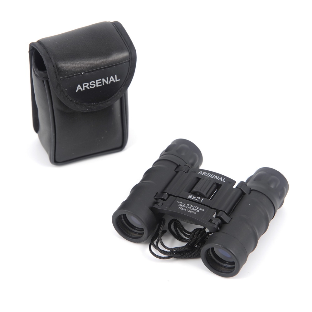 Бинокль Arsenal 8x21 NB25-0821 - недорогой компактный бинокль. Данный бинокль может послужить великолепным подарком для детей. Главным образом бинокль предназначен для проведения наблюдений в дневное время суток. Легкий и компактный, его всегда удобно взять с собой на природу, ведь он не займет много места и не обременит Вас. Для достижения более компактных габаритов бинокль построен по оптической схеме с применением призм типа Roof, изготовленных из боросиликатного сорта оптического стекла (BK7). Чтобы уменьшить количество отраженного света, и тем самым повысить качество картинки, на все оптические поверхности бинокля раздела воздух-стекло нанесено специальное просветляющее покрытие.