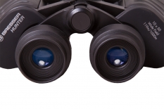 Бинокль BRESSER HUNTER 10x50 имеет прорезиненный, удароустойчивый корпус. Специальное устойчивое к истиранию, антибликовое, многослойно просветлённое голубое покрытие линз защищает от царапин и способствует максимальному проникновению света (не менее 75%), а призмы, сделанные из стекла BK7, позволят получить более качественную и контрастную картинку на окуляре. Резкость изображения регулируется центральным колесом, кроме того предусмотрена возможность коррекции диоптрия с помощью кольца на правом окуляре, дабы подстроить прибор под индивидуальные особенности зрения. Также возможно отрегулировать межосевое расстояния для максимально комфортного наблюдения. При схожих оптических характеристиках поле зрение этого бинокля превосходит аналогичные модели других производителей и при этом сохранены компактные размеры и небольшой вес.