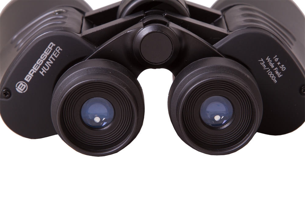 Бинокль BRESSER HUNTER 16x50 имеет прорезиненный, удароустойчивый корпус. Специальное устойчивое к истиранию, антибликовое, многослойно просветлённое голубое покрытие линз защищает от царапин и способствует максимальному проникновению света (не менее 75%), а призмы, сделанные из стекла BK7, позволят получить более качественную и контрастную картинку на окуляре. Резкость изображения регулируется центральным колесом, кроме того предусмотрена возможность коррекции диоптрия с помощью кольца на правом окуляре, дабы подстроить прибор под индивидуальные особенности зрения. Также возможно отрегулировать межосевое расстояния для максимально комфортного наблюдения. При схожих оптических характеристиках поле зрение этого бинокля превосходит аналогичные модели других производителей и при этом сохранены компактные размеры и небольшой вес.