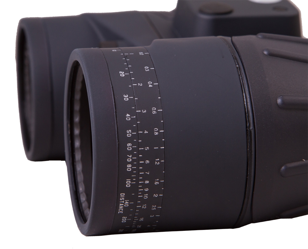 Одна из основных особенностей этой модели - встроенный аналоговый компас. Когда Вы смотрите в бинокль, по нижнему краю зрения располагается шкала в градусах (от 0° до 360°). Когда в середине шкалы обозначено 360, это значит, что Вы смотрите на север. Если - 180, то на юг.