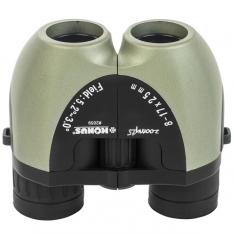 Компактный и легкий бинокль, выполнен в современном стиле с применением инвертированных Porro призм. Механизм зум-увеличения 8х-17х позволяет переключаться между общим и крупным планом наблюдаемого объекта. Плавная и точная фокусировка осуществляется винтом на корпусе.