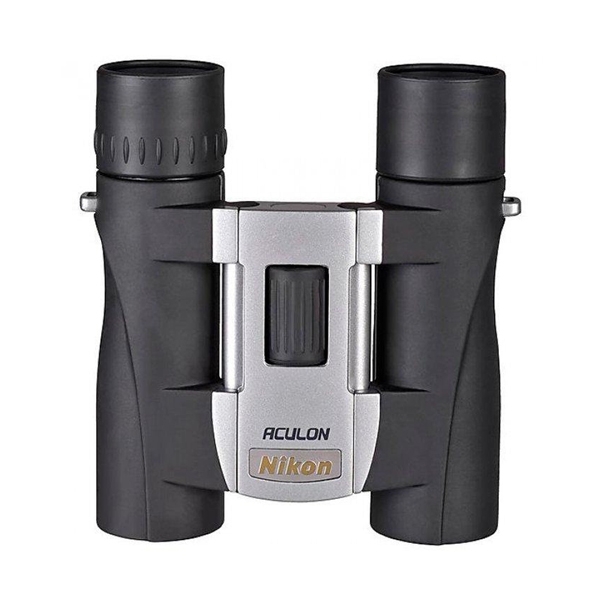 NIKON ACULON A30 10x25 Silver – мощный бинокль уменьшенных габаритов с соединением тубусов на открытых петлях. Его вес составляет всего 200г, а кратность (10х) максимально допустима для получения стабильной картинки при удержании бинокля на весу.