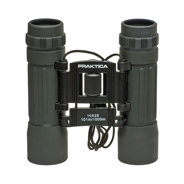 Бинокль Praktica 10x25 имеет конструкцию, при которой бинокулярные тубусы компактно складываются в центральном положении. Это один из самых лёгких биноклей формата 10х25. Он с лёгкостью поместится в кармане брюк или рубашки, едва ли будет обременительной ношей в туристическом походе или в походе в театр. Большое поле зрения делает весьма удобным просмотр спортивных соревнований игровых видов спорта, а также представлений на сцене театров и концертных залов.
