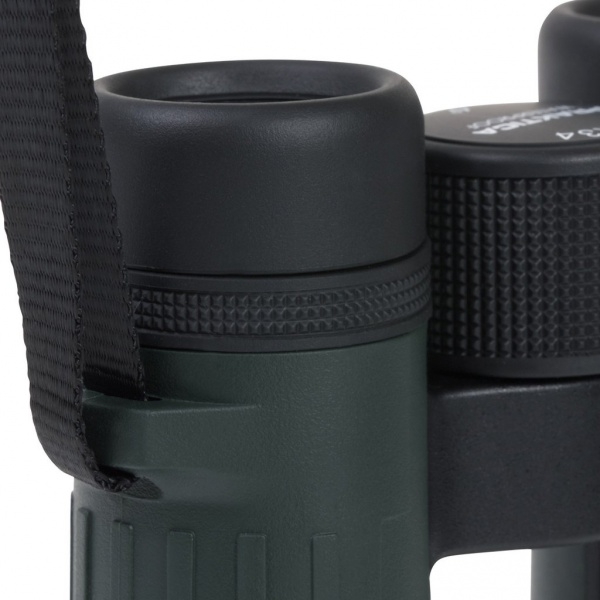 В комплектации бинокля особо хочется выделить наличие крышек и объективов и окуляров, что далеко не всегда свойственно для биноклей подобного размера. Кроме того, крышки объективов надежно закреплены резиновыми поясками, они не спадут и не потеряются, но при необходимости могут быть сняты. Широкий нашейный ремень значительно добавляет удобство использования в особенности во время длительных переходов, когда бинокль висит на шее.