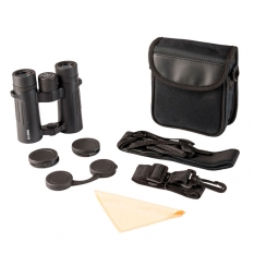 Эргономика бинокля продумана до мелочей: удобство фокусировки обеспечивает барабан с ребристым покрытием и плавным ходом. Выдвижные наглазники типа twist-up с тремя положениями обеспечивают комфортный вынос зрачка для наблюдений в очках и без них. Коррекция диоптрий для людей с разной силой зрения реализована в виде кольца с ребристой текстурой, которое расположено на правом окуляре. Откидные защитные колпачки на объективы фиксируются на корпусе, а колпачки окуляров оснащены креплением для нашейного ремешка, идущего в комплекте. Также в комплект входит плотный чехол с возможностью ношения на поясе или плече.