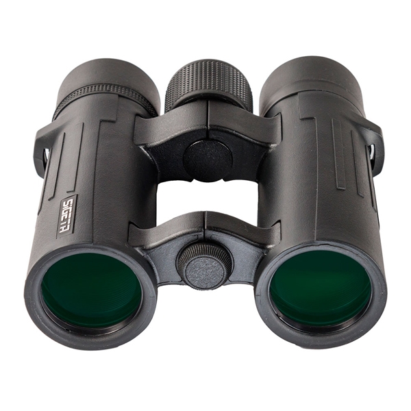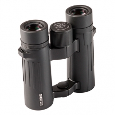 Эргономика бинокля продумана до мелочей: удобство фокусировки обеспечивает барабан с ребристым покрытием и плавным ходом. Выдвижные наглазники типа twist-up с тремя положениями обеспечивают комфортный вынос зрачка для наблюдений в очках и без них. Коррекция диоптрий для людей с разной силой зрения реализована в виде кольца с ребристой текстурой, которое расположено на правом окуляре. Откидные защитные колпачки на объективы фиксируются на корпусе, а колпачки окуляров оснащены креплением для нашейного ремешка, идущего в комплекте. Также в комплект входит плотный чехол с возможностью ношения на поясе или плече.