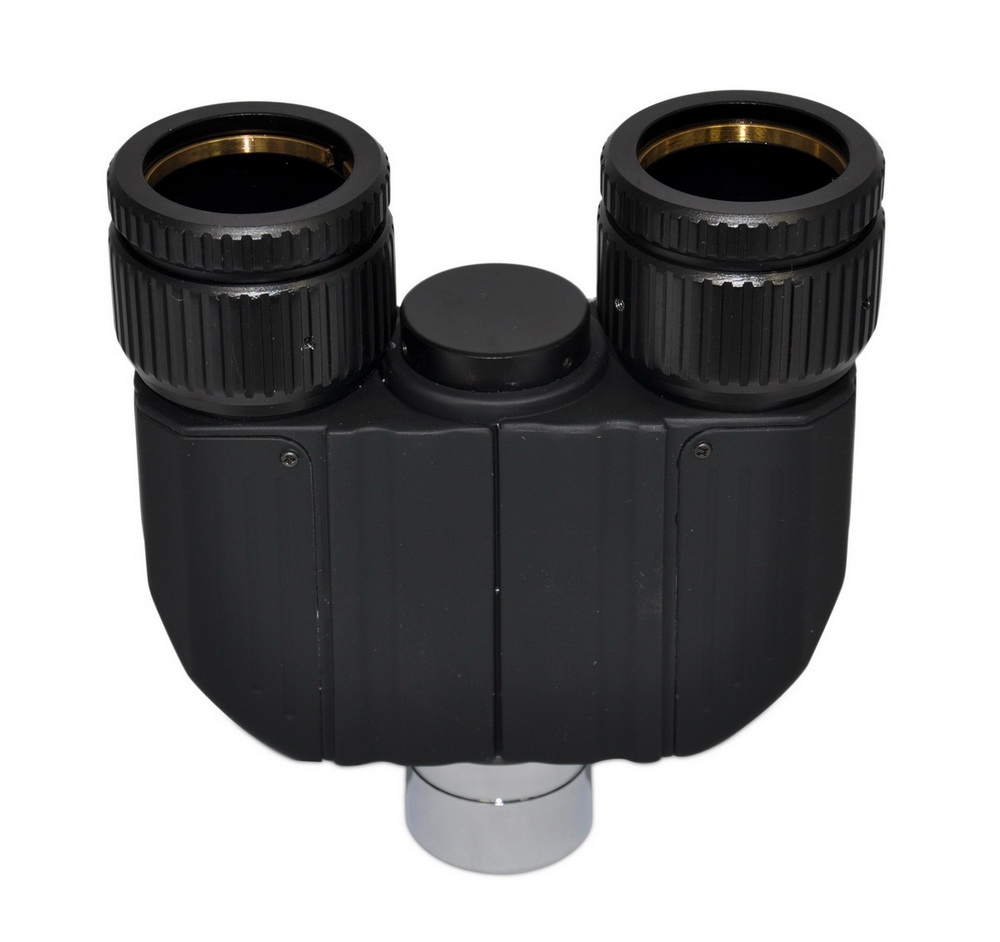 Биновьювер - оптическое приспособление, разделяющее свет, собираемый объективом телескопа, на два пучка, что позволяет вести наблюдения двумя глазами. Это обеспечивает заметный 3D- эффект при наблюдениях и примерно на 40% увеличивает качество видимости мелких деталей и их наблюдаемое количество. Из-за неизбежно возникающих светопотерь это приспособление рекомендуется для наблюдения ярких объектов (Луны, планет). Ведение наблюдений требует наличия пар одинаковых окуляров. Рекомендуется использовать окуляры с полем зрения до 70 градусов и с удобно вынесенным зрачком. Посадочный диаметр устройства 1,25". Для фокусировки необходимо применять 2х линзу Барлоу, входящую в комплект его поставки.
