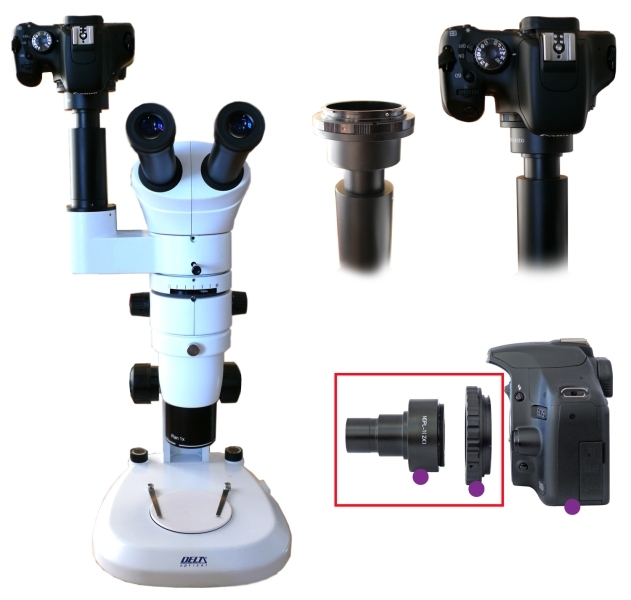 Высококачественный оптический фотоадаптер позволяет подключить DSLR-фотокамеру Canon как к монокулярному, так и к тринокулярному микроскопу. Позволяет фотографировать препараты с высоким разрешением.